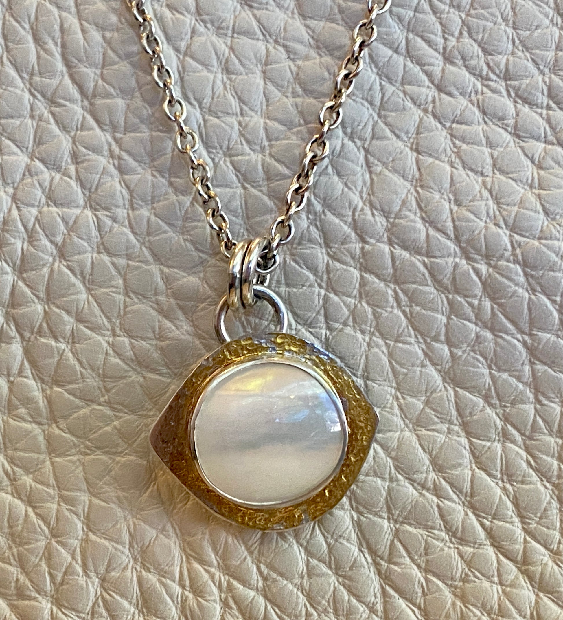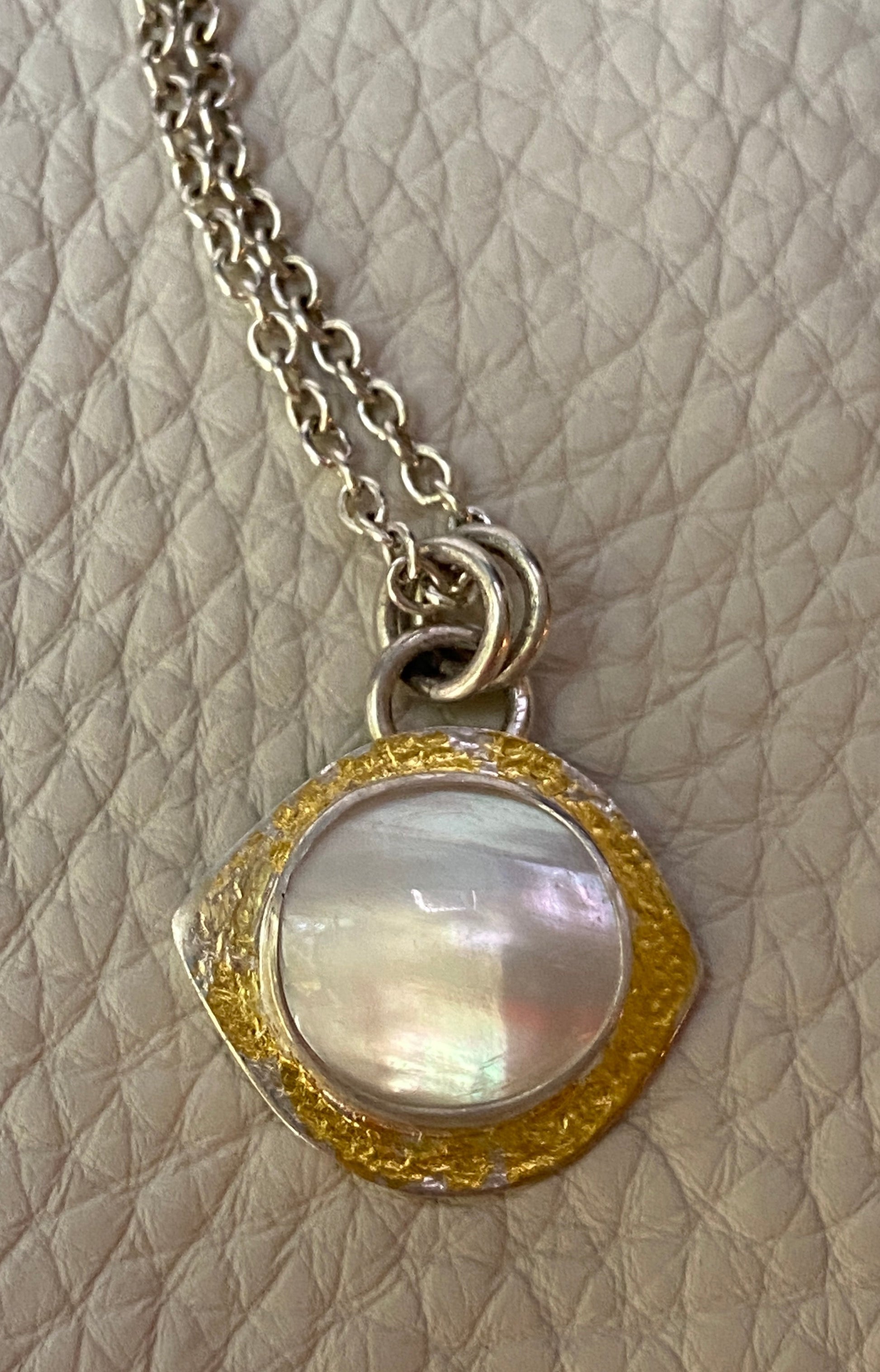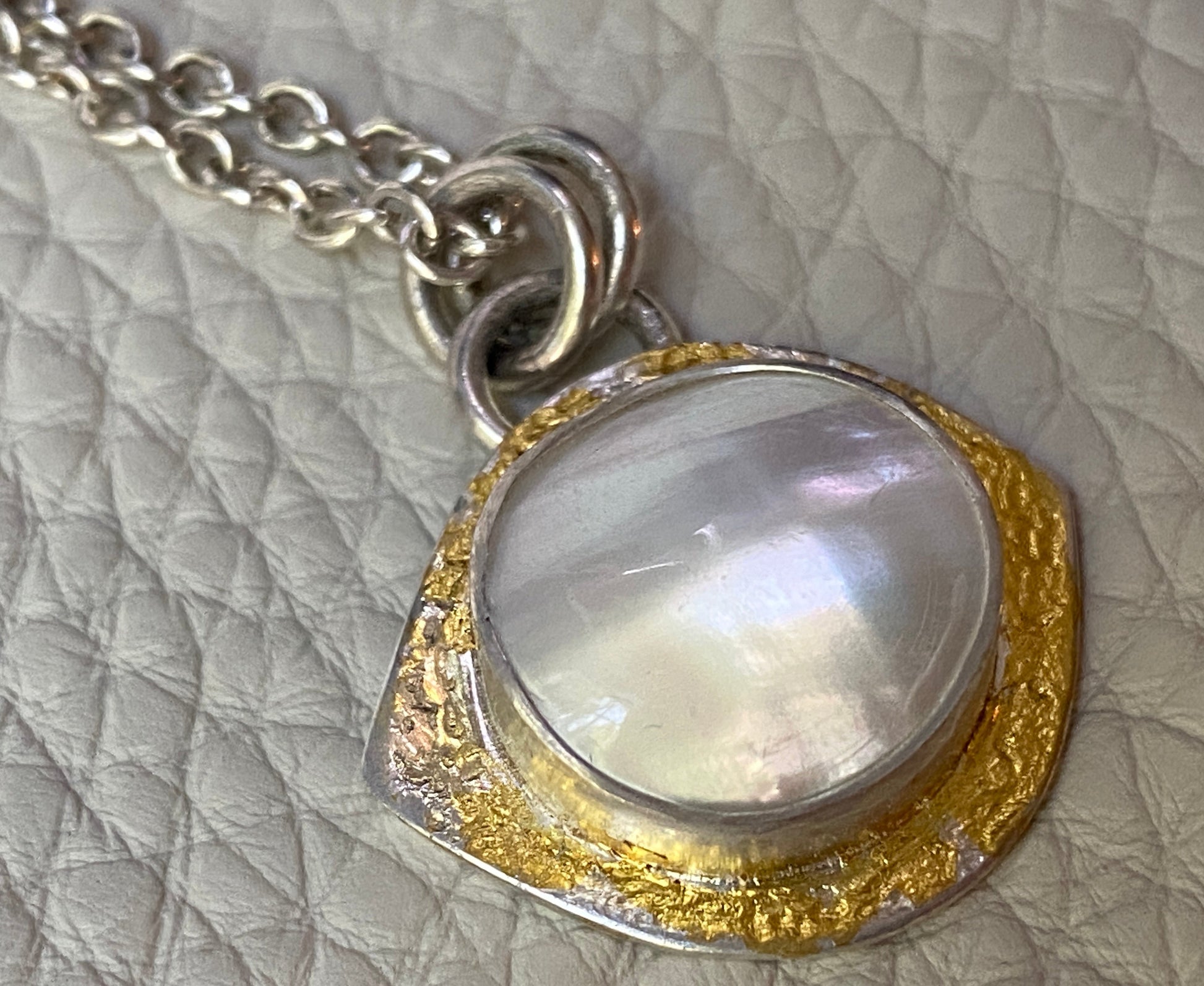 Beautiful pearl set in sterling silver with 14k gold keum-boo detail.
