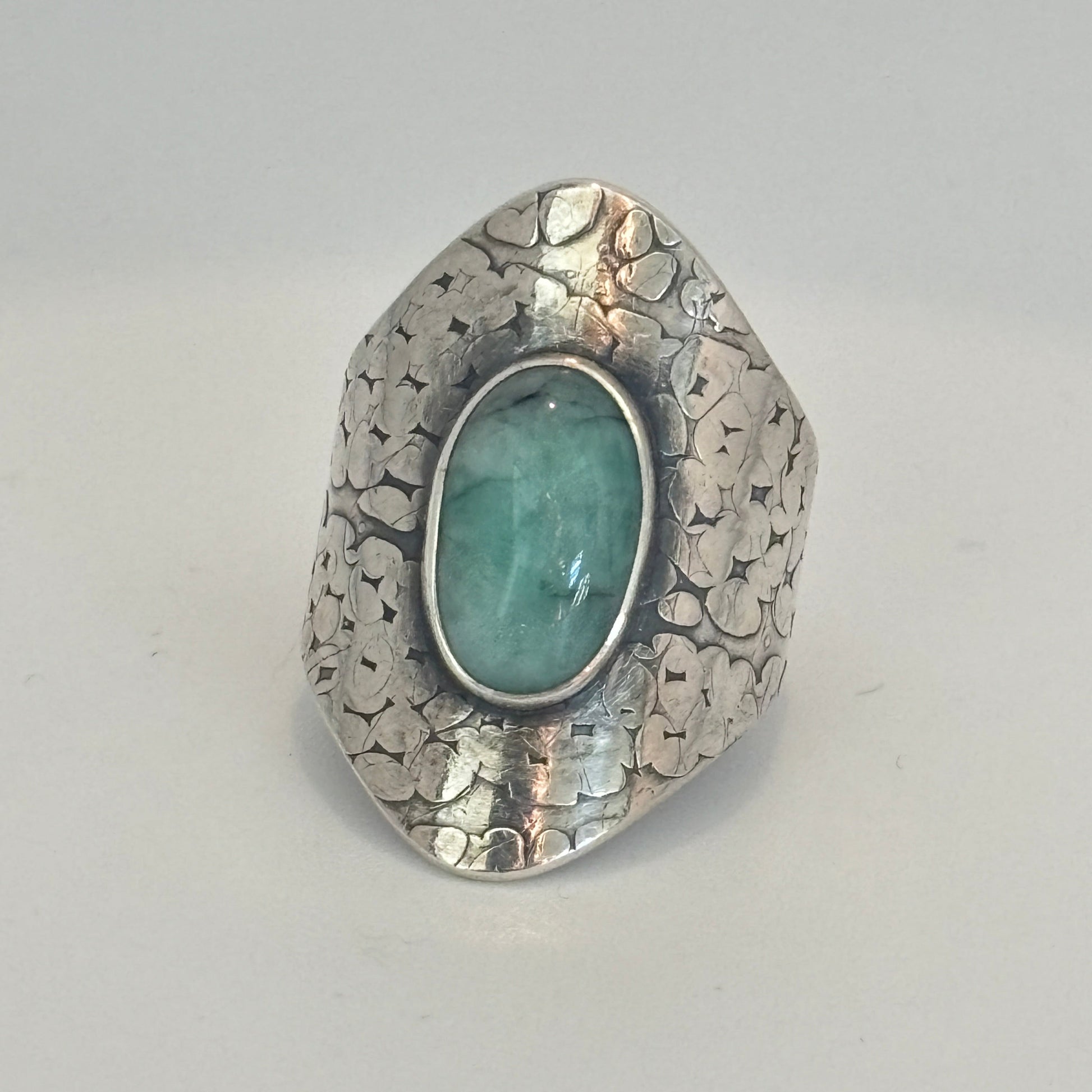 Amazonite Serpent Shield Ring