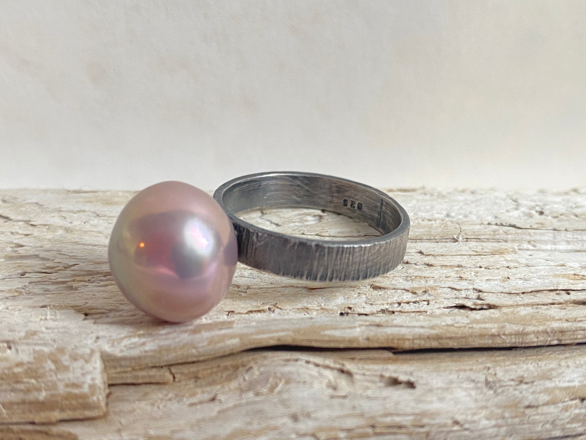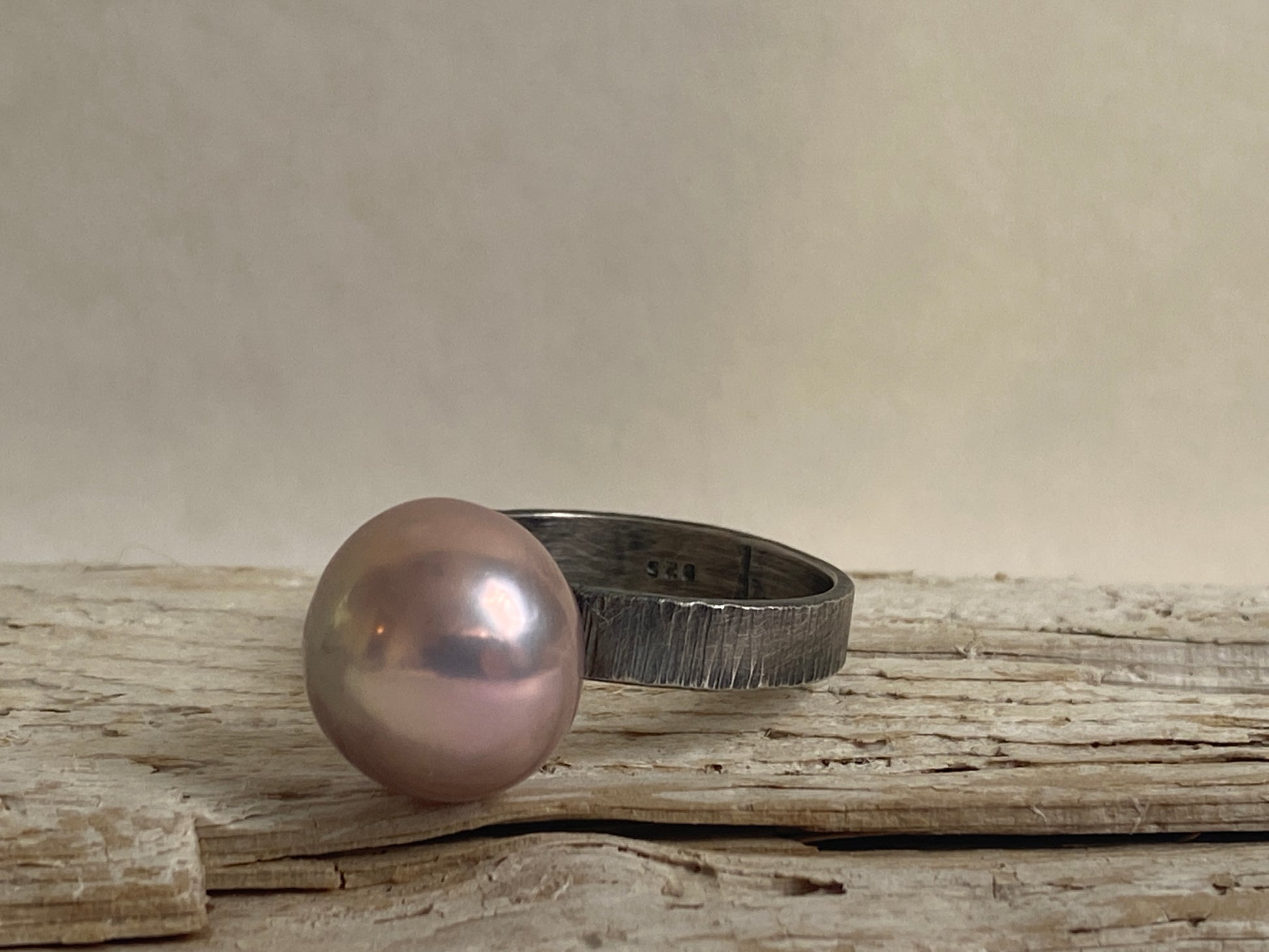 All-around fun with a rebellious twist. This 11mm mauve pink Edison pearl makes a bold statement, perched confidently on a handmade, textured sterling silver band. Inspired by my take on a ring Carrie rocked at brunch in And Just Like That, this piece brings classic glam into the now—with attitude.