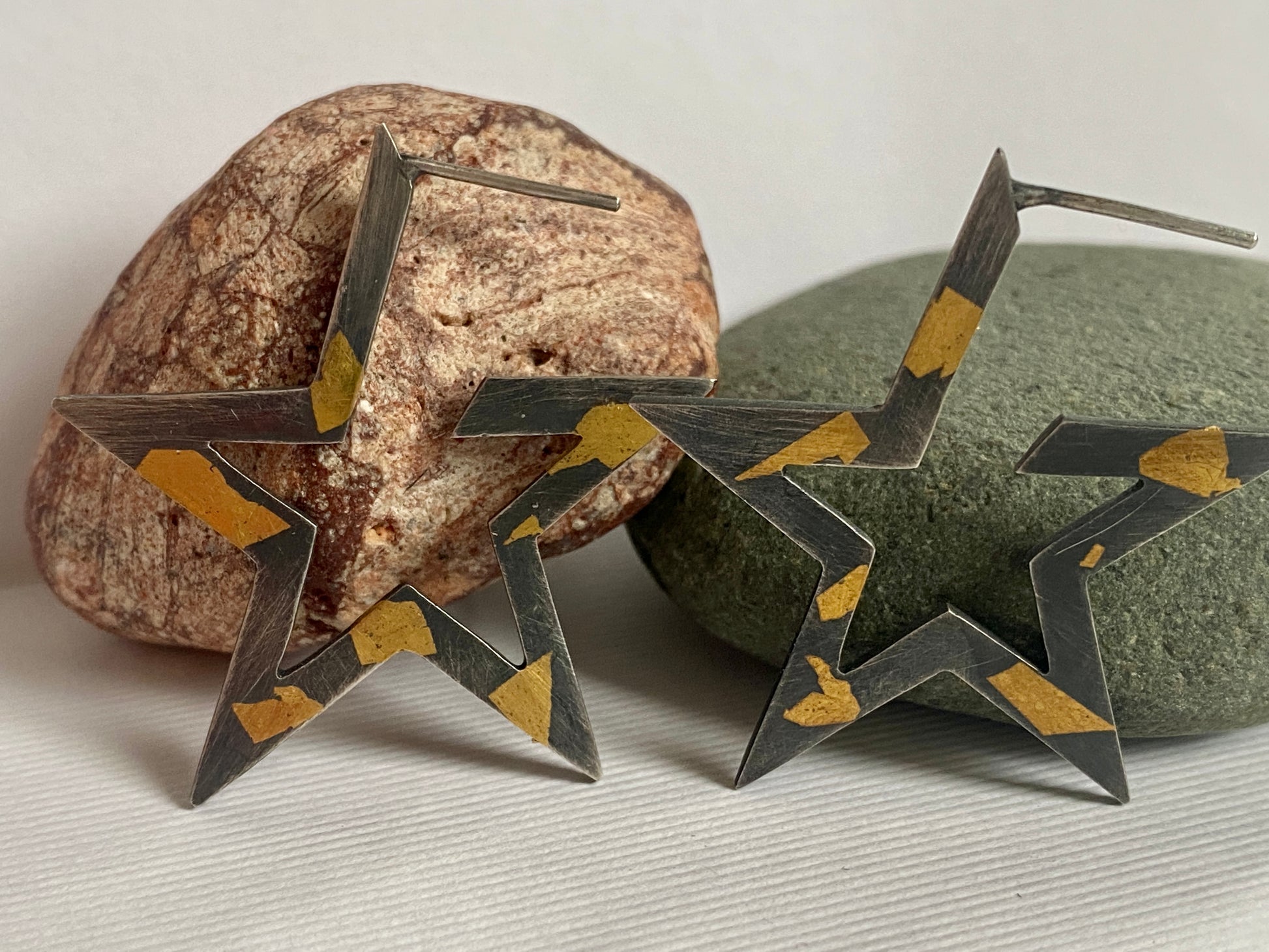 *All keum-boo finish stellar hoops will be made to order and the exact placement of the gold will vary from that in the photo - but will be just as STELLAR! Keum-boo will be on one side of each earring.
