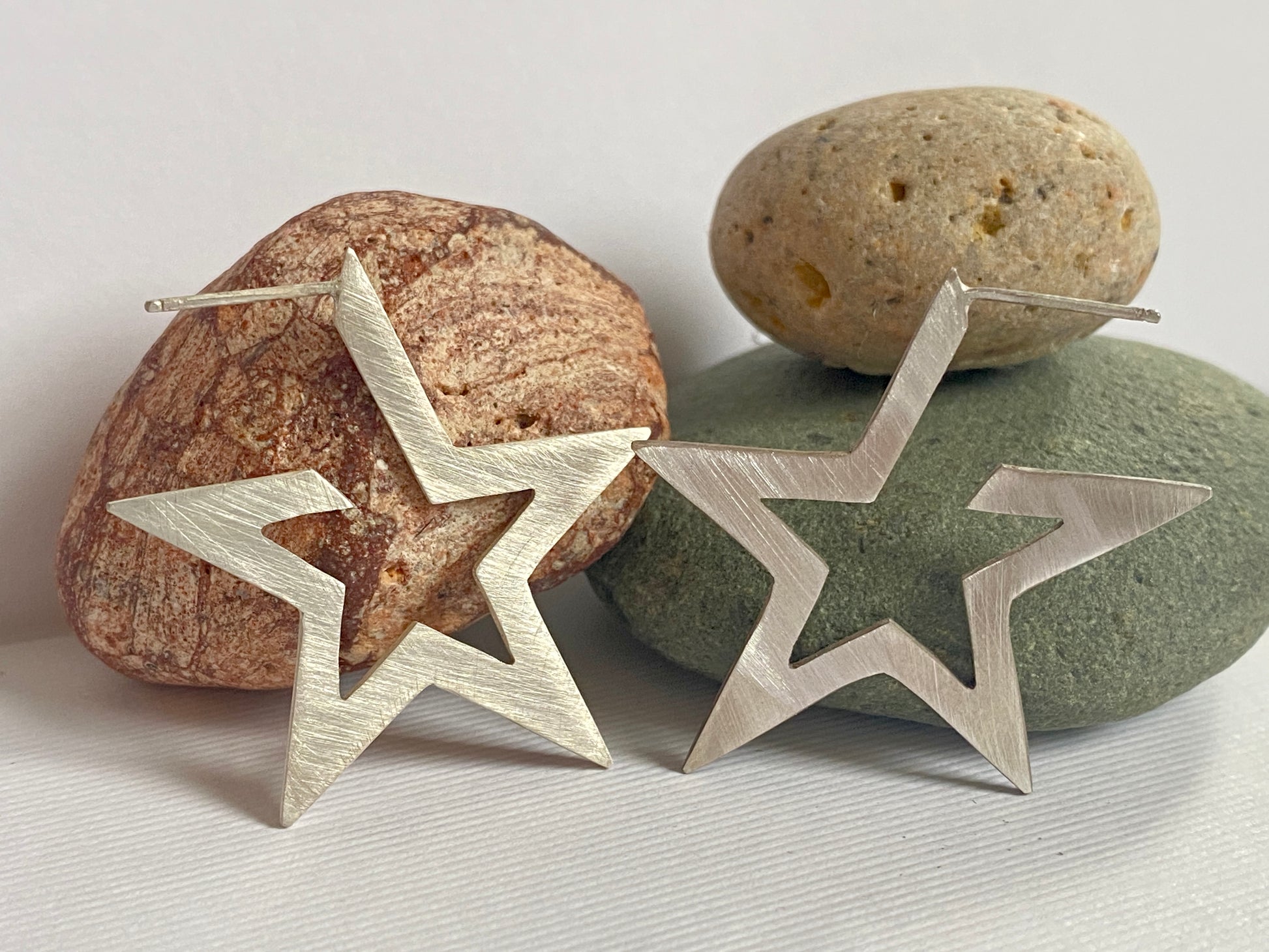 You're sure to feel like a star in these stellar hoops! Made from sterling silver, texturized and completed with your choice of finish: oxidized, keum-boo (gold flecks +$12), or matte silver. Approximately 1.5" diameter.