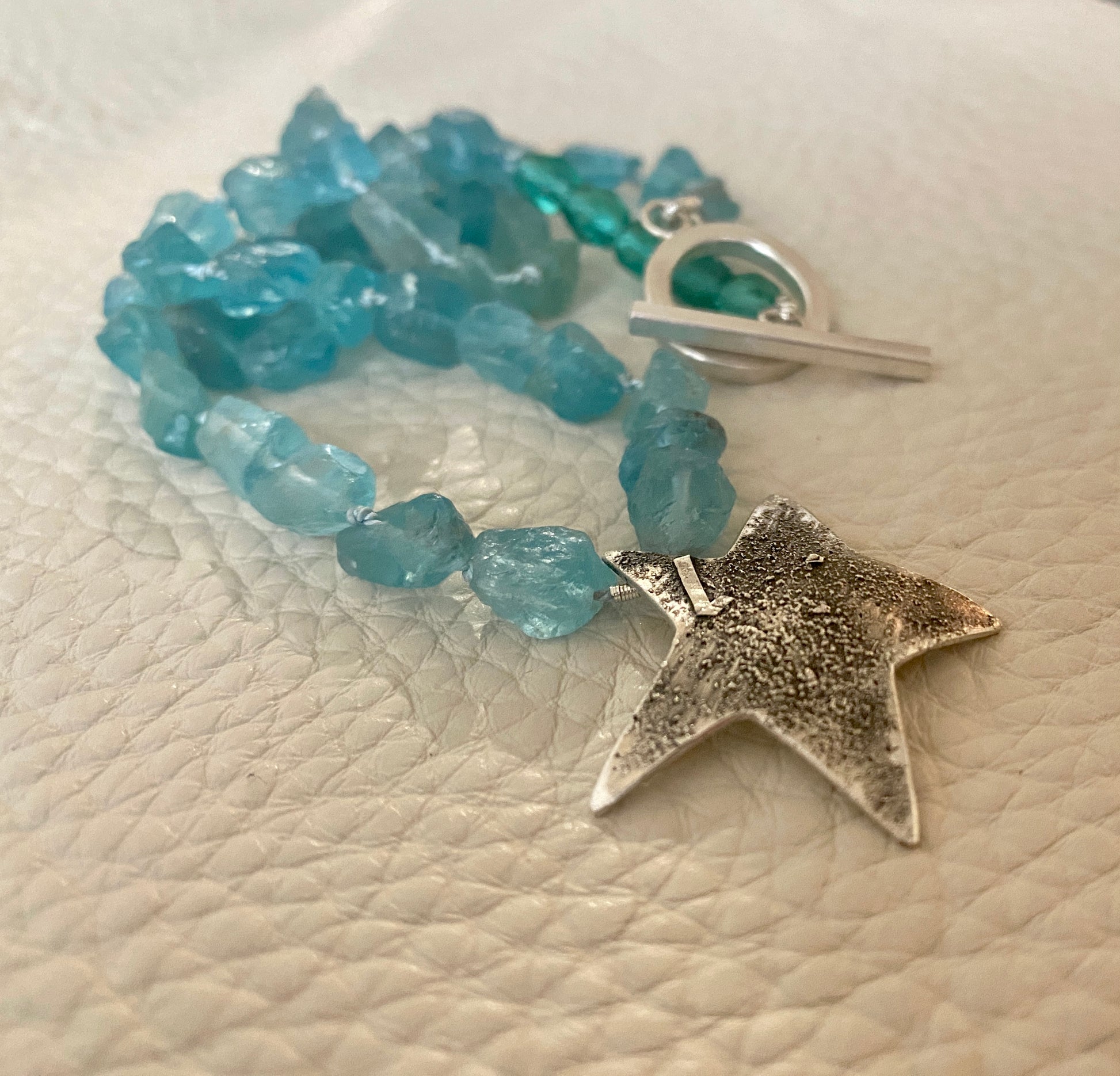 Raw apatite crystal reminding us to embrace the strength that lives within illuminates this textured/oxidized star.