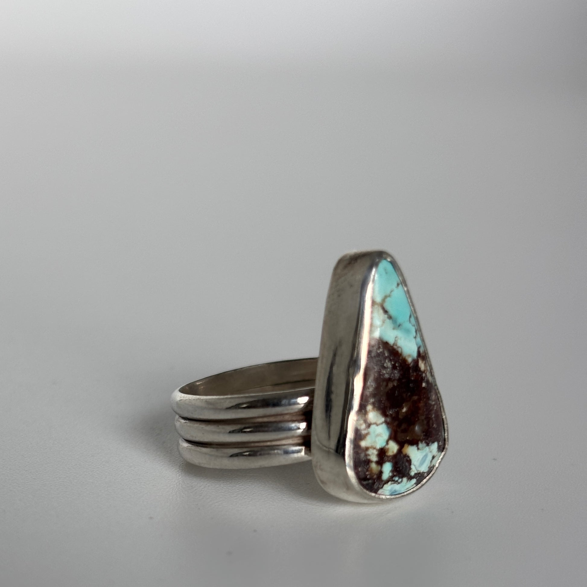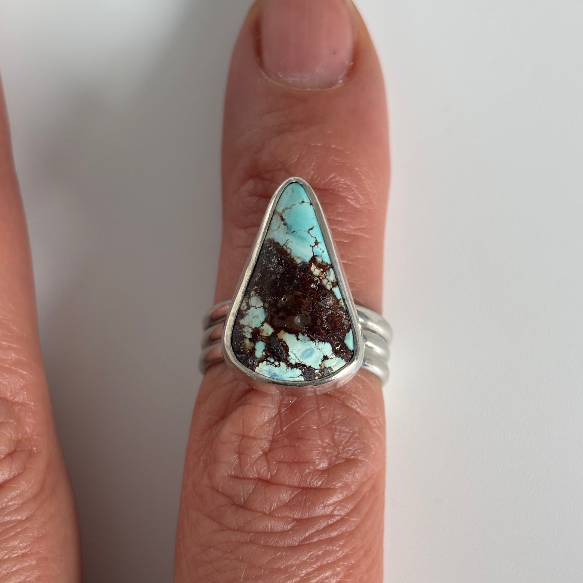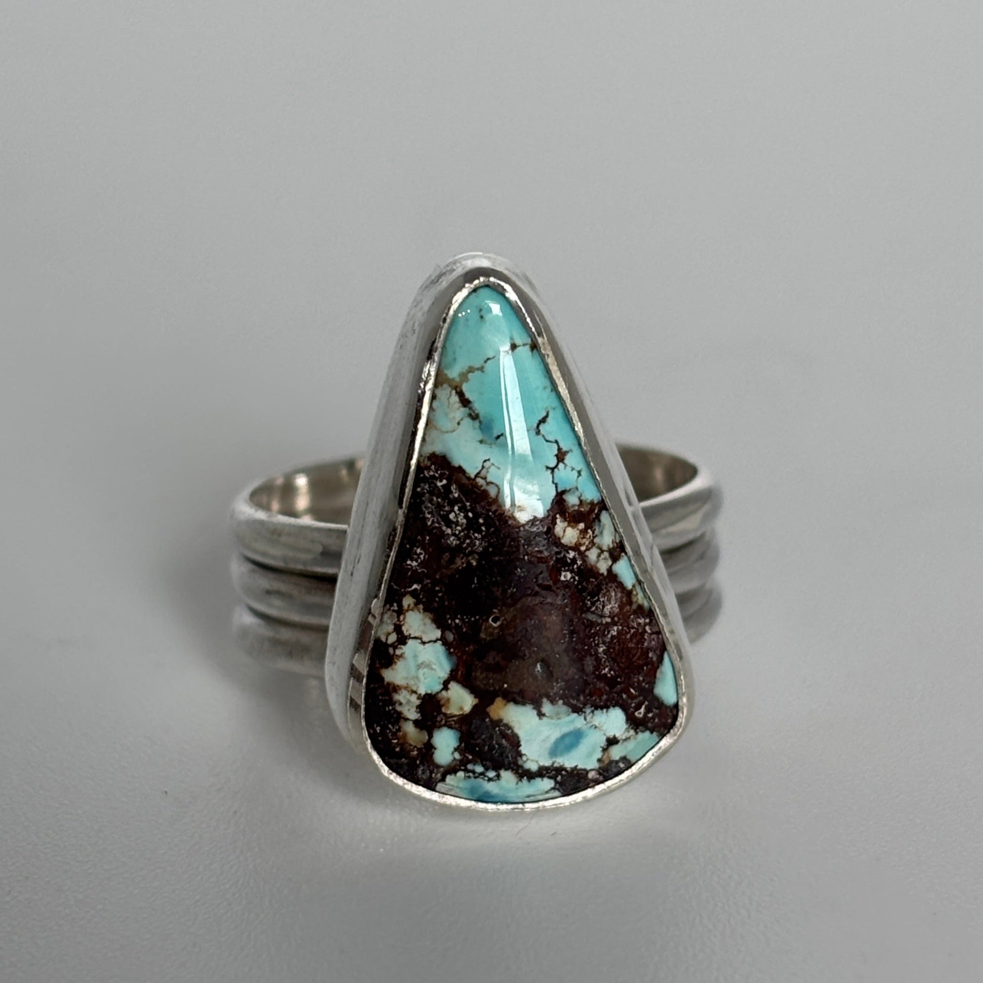 Natural Golden Hill Turquoise wrapped in fine silver on a triple sterling silver band - the stone speaks for itself!